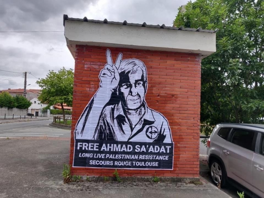 جدارية في مدينة تولوز الفرنسية للأمين العام أحمد سعدات تحمل شعار "عاشت المقاومة"
